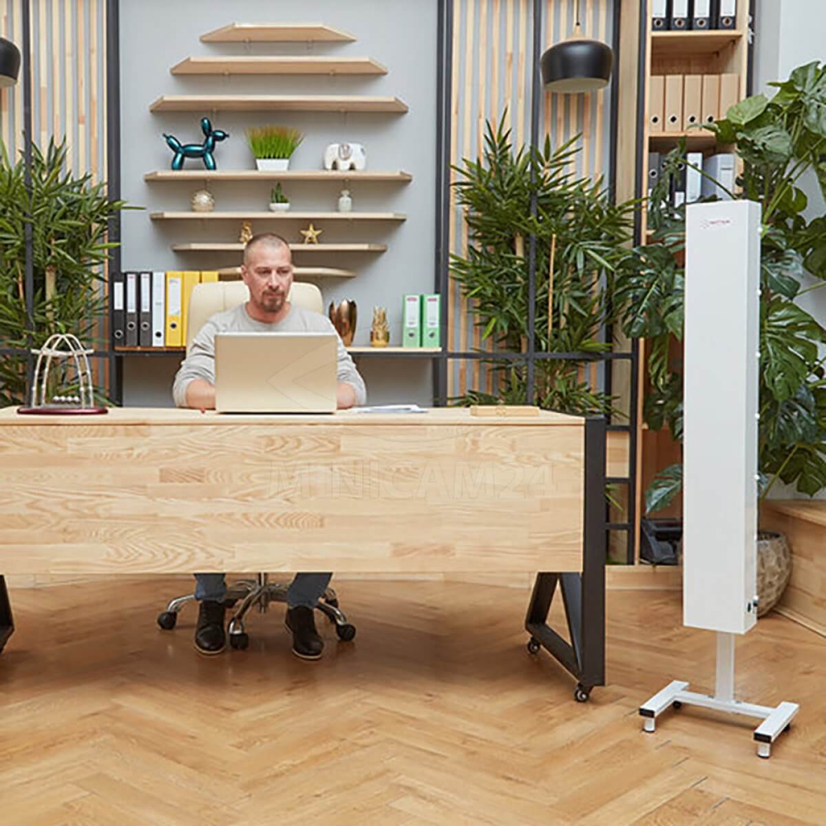 Прибор для обеззараживания воздуха в общественных, дошкольных, школьных, производственных, лечебно-профилактических или бытовых помещениях. Очистка выполняется с помощью источника ультрафиолетового света, установленного внутри прибора. Для повышения эффективности устройства, воздух к излучателю нагнетается встроенным вентилятором. Установка рециркулятора производится путем его фиксации на поверхности стены в вертикальном положении с помощью специальных креплений. Обеззараживание выполняется независимо от наличия людей в помещении, на их здоровье не оказывается никакого влияния.