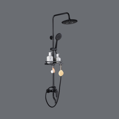 Душевой комплект с тропическим душем Circle черный матовый предназначен для ванной или для душевой кабины. Система тропический душ монтируется на стену и выглядит как металлическая матовая стойка с небольшим пластиковым контейнером для принадлежностей для мытья. Высота лейки достигает 225 мм. Верхний душ имеет круглую форму и оснащен регулятором струи в трех режимах, при которых вода распыляется с разным диаметром. Смеситель с изливом поворотным управляется рычажным способом. В комплект входят душевая система, штанга, пластиковая емкость и крепежные элементы.