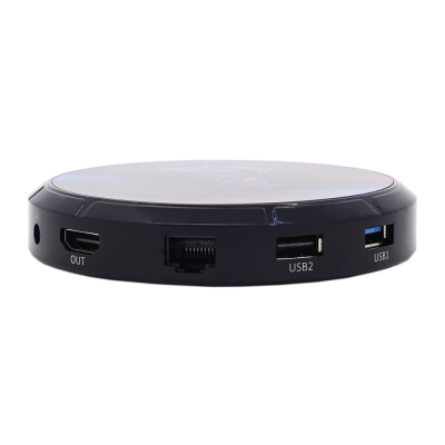 Приставка с ярким дисплеем, на котором отображается текущее время, информация о режиме воспроизведения и о качестве Wi-Fi соединения. Выполнена в броском фирменном дизайне. Медиаплеер работает на базе высокоскоростного четырехядерного производительного процессора Amlogic S905X3. Пользователю доступен Play Market, позволяющий скачивать и устанавливать различные приложения. Беспроводной модуль связи Bluetooth дает возможность подсоединить клавиатуру, мышку, наушники, колонки или другое оборудование, поддерживающее дистанционную работу.